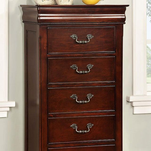 This masterful 5-piece Briana bedroom set includes a chest and dresser as well as nightstand. Highlighting the set is a majestic bed with a slightl...