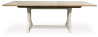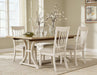 This dining set elevates the art of modern farmhouse design. Its charming two-tone aesthetic blends antiqued white and light grayish brown finishes for a feeling of relaxed comfort. Now your only worry is what to serve for dinner.