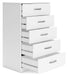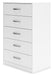 This chest of drawers has simple lines and contemporary styling, allowing it to blend seamlessly with any decor. Five spacious drawers slide easily on metal ball bearings and can be used to keep your clothes neat and organized. Sleek metal pulls in a brushed nickel-tone finish add to the streamlined aesthetic. Combine with other units in the collection to create a room that’s smart and stylish.