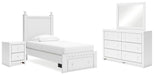 Package Contents: 5-Piece: Bed (Headboard,Footboard,Rails)/Dresser & Mirror